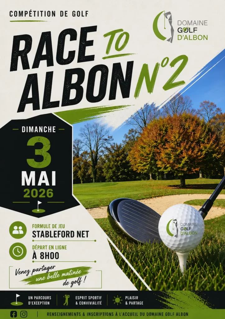 Notre parcours de golf offre une expérience exceptionnelle pour les passionnés, qu’ils soient débutants ou golfeurs confirmés. Situé dans un cadre naturel, notre parcours est conçu pour allier technique et plaisir de jeu. Que vous souhaitiez participer aux compétitions ou simplement profiter d’une partie en pleine nature, le Golf d’Albon est l’endroit idéal pour vivre votre passion du golf.