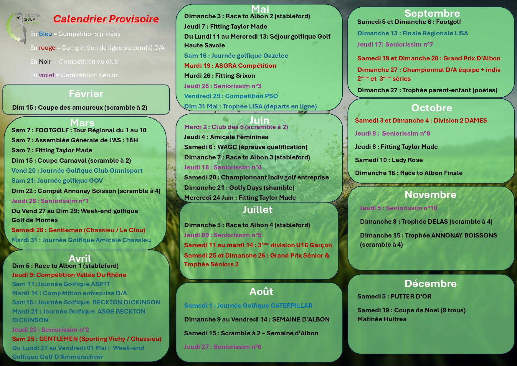 Retrouvez notre calendrier des compétitions ici !
